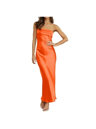 Amazon Com Women S Dresses Women S Solid Tube Bodycon Dress Strapless Sleeveless Fitted Long Dress Dress For Women Color Coral Orange Size Small Clothing Shoes Jewelry