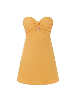 Shop The Avila Pintuck Pleat Bust Strapless Dress Neon Orange Selfie Leslie